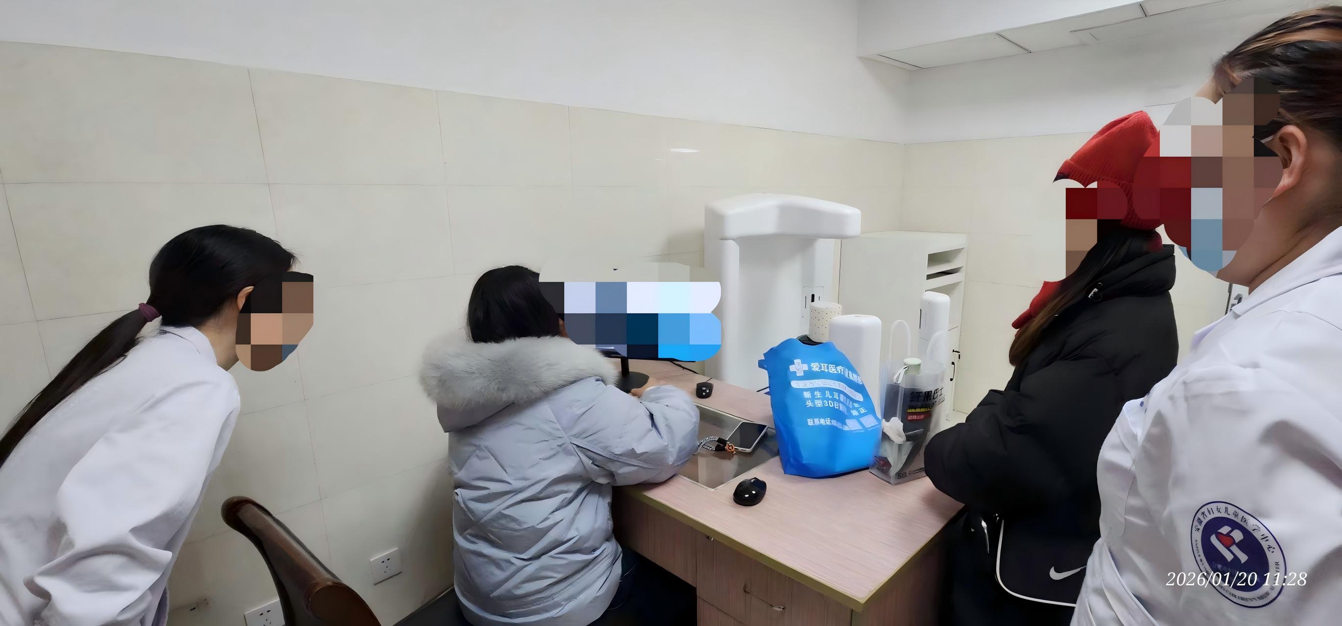 开诊当日,门诊便迎来众多咨询的家长,就诊时,由儿科医师联合爱耳医疗技术团队,通过数字化头型扫描、发育指标评估等方式,为宝宝出具专业诊断报告;若需干预,可现场获取个性化矫正方案,实现 “筛查 - 评估 - 干预 - 转诊” 的一站式诊疗服务,无需家长多院奔波。