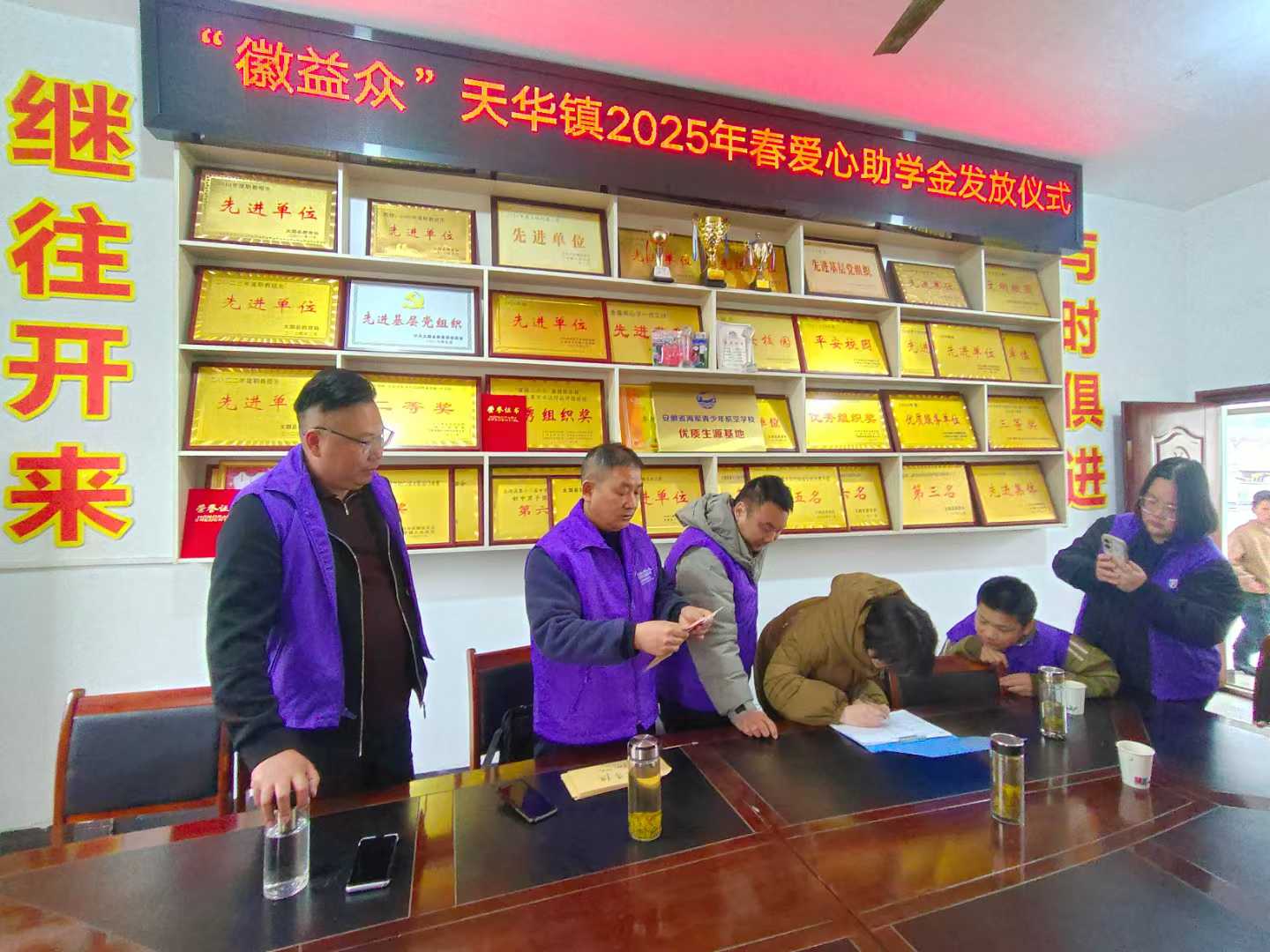 2025 年 4 月 6 日,爱耳医疗团队前往天华镇开展助学慰问活动,为当地孩子们送上助学金与学习用品,实地关怀孩子们的学业与生活需求。